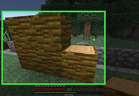Place down the blocks of jungle wood and put the cocoa beans on the wood. (Place cocoa beans on the side of jungle wood as it cannot be placed on top)]
