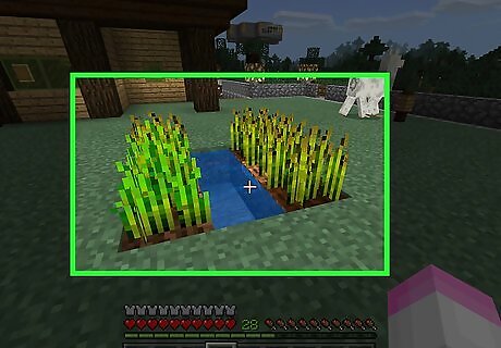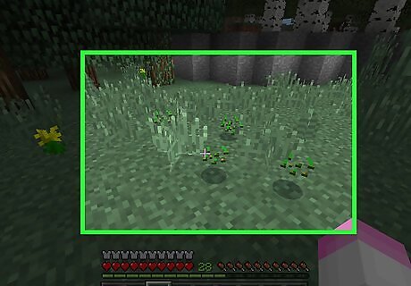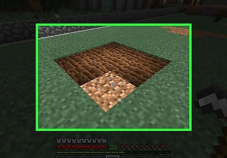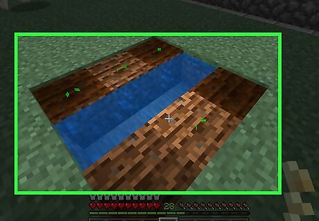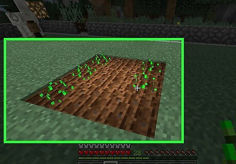 Then, find a nice stretch of grass blocks and use the hoe to till it to make farmland.