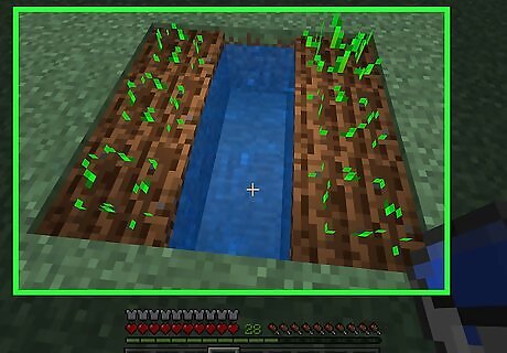 Then, you can dig a canal next to the growing seeds and put water there by using the bucket. If you are on survival mode, you may need to refill the bucket to make the water still.