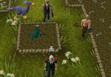Go to the corresponding farming patch. Know that most of the allotment patches are located on the outside perimeter of flower and herb patches. Special patches, wood trees, and fruit trees have their own locations around the RuneScape world.