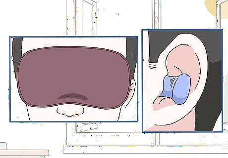 Utilize eye masks or ear plugs. Make small adjustments to your environment to ensure that you get the best sleep possible during this time. Use eye masks to prevent light from keeping you awake and ear plugs if you live in a noisy environment or have a partner who snores. You can also purchase light cancelling drapes or blinds to keep light out of your room. Consider playing sleep sounds, like rain or the ocean, to help soothe you to sleep.