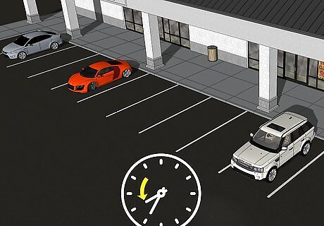 Choose a row and look for a spot. When you get to the parking lot at your destination, choose a parking row. Instead of driving around the lot looking for a spot, simply choose one row and wait for a spot to open up. You will save the time involved in the more active parking lot search, which doesn’t typically save any time.