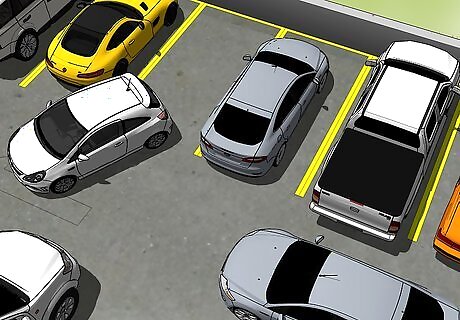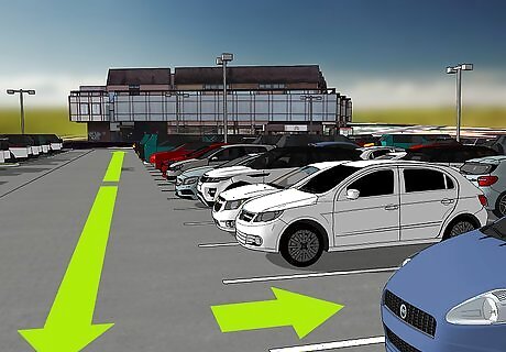 Look for spots on the periphery. Parking spots directly in front of an entranceway are often the most coveted. To save time, look for a spot a few parking rows over or even on the edges of the parking lot.