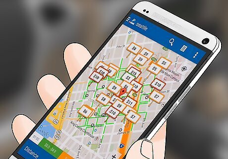 Use a parking app to find a spot near your entertainment event. You can download parking apps that specialize in major sporting and entertainment events, such as Parking Panda. If you refer people to the app, you may be able to earn free parking spots at entertainment events.