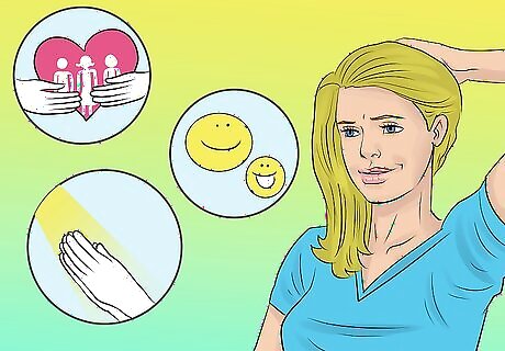 Learn to find joy in adversity. This may be the hardest time to find joy, and can even feel wrong if you consider that there is no joy during hardship or loss. However, it is still possible to find moments of joy among the hard times and indeed, it's essential in order for you to feel self-nurtured and to come through the hard time in a better and more whole state. Notice the love of others around you. Even if you're going through a breakup, remember that there are other people who love you unconditionally, including your parents, siblings, children and close friends. Draw on their strengths to bring you some joy. Allow yourself some humor. Hardship isn't meant to be all about tears, frustration and anger. Humor can help to relieve tension and allows you to think more creatively and joyfully about things. It may even provide you with an opportunity to solve some of the problems. Give it go and allow yourself this break. Try a gratitude journal or keeping a journal of your thoughts. Forcing yourself to keep finding joyful moments can remind you that this time will pass and things will improve and become balanced again. Avoid making negative times into full scale dramas. If it's already bad enough, dramatizing it won't help any and will sap any joy. Bad stuff happens to everyone in life, at differing times. Magnifying the bad just brings more bad, so stop doing this if you've a habit of it. Turn to your faith or spiritual sources. If you have a faith or spiritual beliefs, these can be an important way to sustain you and bring joy back into your life during hard times.