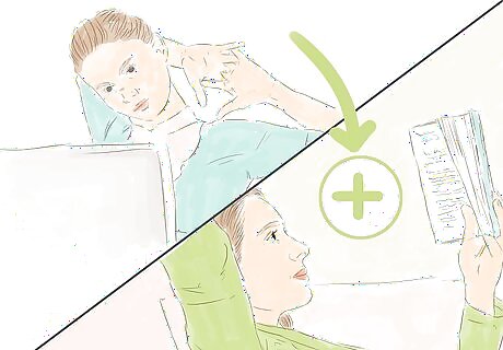 Do breathing exercises through the day. One way to help alleviate the stress is to practice breathing exercises. Deep breathing can help relax you, clear your mind, and help you eliminate negative, stressful thoughts. This aids your obsession with productivity by helping you take a step back, reconsider what’s important, and reduce the stress you’re piling on yourself by being obsessed with getting things done. You can do something as simple as abdominal breathing. Sit up straight in your chair with your feet on the floor. Inhale through your nose, breathing so that abdomen expands. Place a hand on your belly and wait for it to move as you inhale. Hold for a count of four, then release slowly, your abdomen flattening as you expel all the air.