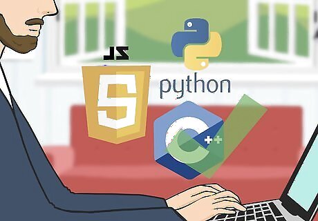Become fluent in a programming language. Programming languages are the bread and butter of computer programmers, so it’s important to have an in-depth understanding of at least one, if not more. Enroll in a programming course or use an online tutorial to develop a mastery of a coding language you can use in a programming job. All things being equal, JavaScript is the most widely used programming language, so learn this one to have the most widely applicable coding knowledge. Python and C++ are also very popular. Consider learning these in addition to JavaScript to give yourself an edge in applying for programming jobs.