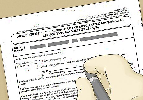 Include an oath. Every patent form requires an oath to be signed and notarized stating who created the invention. The necessary 2 page oath form can be found online. In lieu of a notarized oath, an application may also include a sworn declaration, the validity of which is presumed from the fact that making a false declaration would be a felony.