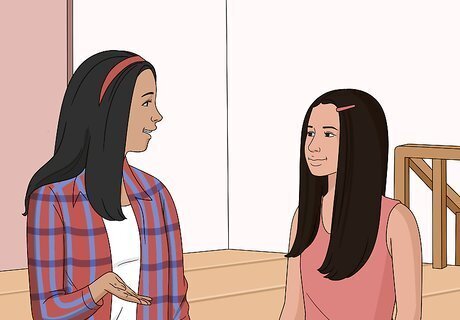 Find a compromise. Try to find a solution that will help you stop fighting. Keep in mind that you both may have to let go of something you want to come to an agreement. This can make you or your sister upset. If you’re both having trouble staying calm, you may need a parent to act as a mediator. Examples of compromises include: Taking turns using your favorite toy Sharing a piece of clothing that you both like to wear Taking your sister along sometimes when you hang out with your friends