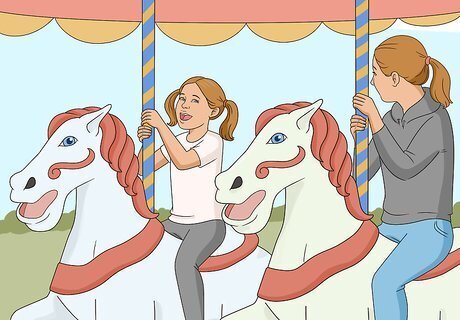 Go somewhere fun together. Many of us get bored with our regular schedules. Add some excitement to your hang-out time by going somewhere fun. However, make sure you have your parents’ permission to leave the house with your little sister. Examples of fun places to go include: The park A local fair or festival A mutual friend’s house