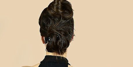Use hair clips to divide your hair into sections. How many sections you have will depend on how long and thick your hair is. The goal is to make it manageable, so just divide your hair into sections until you feel able to work with it. Separate your hair into 3 or 4 main sections: a strip near the nape of your neck, a strip across the centre-back of your head, and a strip at the top of your head. Next, separate those sections into at least 2 halves — one on each side of your part.