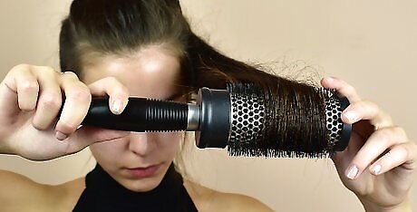 Twirl and spritz the hair. Once the section of hair is out of the brush, give it a gentle twirl with your fingers and let it drop to your shoulders. It should have a gentle, wavy curl in it. If you’re happy with how the curl looks, give it a spritz of hairspray to help it hold its shape. If you use hairspray, hold it 6 inches (15 cm) away from your hair while you're spraying it. Don’t go overboard with the hairspray, otherwise you’ll risk weighing down your hair with product and/or making your hair feel crunchy.