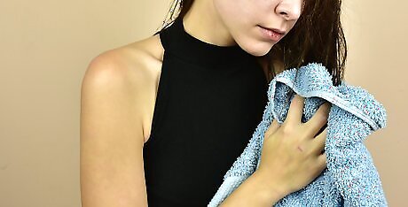 Towel dry your hair. The wetter your hair is, the longer it will take to blow-dry, and the more damaged it could become from the dryer’s heat. It’s healthier for your hair if you can let it dry out a bit on its own before blow-drying it. Some experts recommend leaving your hair in a towel for 15 minutes before blow-drying it. While waiting for your hair to dry off a bit you can get dressed, do your makeup, eat a meal, etc. Your hair should be at least 70-percent dry before you continue.
