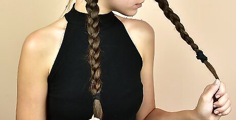 Experiment with different options for adding wave. There are countless options for adding waves or wavy curls to your hair without heat-styling tools. Here are some popular ones: Braids: You can braid your hair in a multitude of ways to achieve different types of wavy looks. Tight french braids on each side of your head will give you voluminous, kinky waves all over your head. A long, classic braid will give you softer waves that start around the nape of your neck. Headband curls: Start by placing a plain stretchy headband on top of your head like a crown, so that it sits low and cuts across your forehead. Starting at the front of your head, twist your hair into 1- to 2-inch sections, and wrap them around the headband moving towards the back of your head. Moving from the front of your head to the back, continue doing this with each section of hair until all of your hair is tucked into the headband. Leave your hair in the headband overnight for the best results. Sock buns: Cut the end (the toes) off a sock (preferably one that matches your hair color) and then roll it up so that it looks like a donut. Put your hair into a high ponytail on top of your head, then pull the ends through the centre of the sock. Move your hair around the sock as you tuck in the ends, so that most or all of the sock is covered by your hair, then begin rolling the sock towards your roots using your hands to keep your hair moving along with the sock. Once it’s at the top of your head, fasten the bun with bobby pins. Leave the bun in overnight. When you take it out, your hair will be big, bouncy, and wavy.