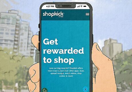 Use cash back programs to earn gift cards for shopping. These apps and sites allow you to passively earn gift cards by shopping as you normally would. A few popular options include: Fetch Rewards: Fetch works as a browser extension or an app. When you shop online through Fetch, you can earn rewards and redeem them in the form of gift cards (including Amazon). You can also earn rewards by playing games or referring a friend. Ibotta: Similar to Fetch, Ibotta lets you earn cash back when you shop with the app, website, or browser extension. When you make enough earnings, you can redeem them for gift cards from various retailers, including Amazon. Shopkick: Shopkick is an app that lets you earn rewards in the form of gift cards when you shop at participating stores. You can earn points by shopping online through the app or by scanning receipts when you shop in person.