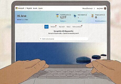 Use the Microsoft Rewards program. Microsoft lets you earn rewards passively by using a variety of Microsoft products, including the Bing search engine, Microsoft Edge, and Xbox. You can also earn points by shopping through the Microsoft store. When you earn enough points, exchange them for an Amazon gift card or other rewards. You can sign up at rewards.bing.com/welcome. Check out our guide to getting Microsoft Rewards points fast!
