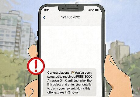 Stay away from shady texts and emails offering gift cards. If you get an unexpected text or email claiming you’ve won an Amazon gift card, don’t respond or click on any links unless you can verify the sender. If you suspect a scam, you can report it to Amazon here. Official gift card texts from Amazon always come from the number 455-72. Some of these scam messages will ask you to fill out a survey or enter some personal information to claim your gift card. Never share your bank account details, passwords, or any other sensitive personal information in exchange for an Amazon gift card. Check out Amazon’s detailed guides to recognizing fake emails, texts, phone calls, and websites from scammers claiming to be affiliated with Amazon.