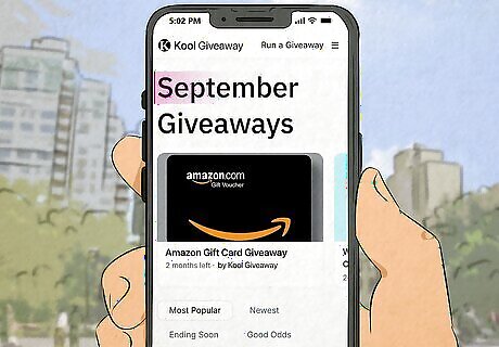 Keep an eye out for raffles and giveaways. Amazon gift cards are a popular prize for raffles and giveaways. Influencers on social media sometimes do gift card giveaways (usually in return for follows, likes, or other forms of engagement). You might also be able to win Amazon gift cards by participating in raffles at local businesses or your workplace. Be careful of signing up for giveaways with businesses or individuals you don’t know and trust, especially online.