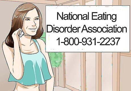 Ask for help. There are times in life when you are afraid to ask for help. You must avoid waiting until it is too late. If your eating behaviors have become hard for you to manage alone, you need to ask for help. Don't wait. Eating disorders are responsible for more deaths than any other mental illness, and a doctor and therapist can help you deal with it. All eating disorders pose serious health risks. Anorexia nervosa has the highest mortality rate of any eating disorder: 5-10% of people with anorexia die within 10 years of developing the disorder, and 18-20% die within 20 years. The sooner you seek treatment, the more likely you are to make a recovery. If you aren't sure where to start, you can try calling a helpline. The National Eating Disorders Association (NEDA) runs a helpline at 1-800-931-2237. These helplines are run by people who have been trained to offer support and guidance. They can also put you in touch with mental health resources in your area. You can also talk to your doctor about getting a referral to a mental health provider. NEDA also has an online "Find Treatment" search directory to help you locate a mental health professional. You can search by your state and by eating disorder specialty, such as anorexia, bulimia, or binge eating.