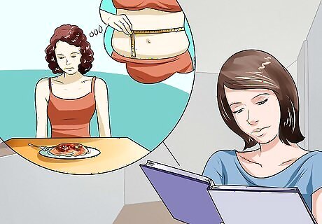 Educate yourself about eating disorders. Eating disorders include but are not limited to: anorexia nervosa, binge eating disorders, bulimia nervosa, pica, rumination and avoidant/restrictive food intake disorder. When learning about these conditions you might recognize some of your own behaviors. This can be a normal response, but you must be cautious to not self-diagnose to the point of upsetting yourself. Leave an official diagnosis to the professionals trained to do so. Other eating disorders might have behavioral variations such as: anorexia where weight is not below normal; binging and purging that occurs on an infrequent basis; night eating syndrome where you eat excessive amounts of food at night; only eating certain foods (avoidant/restrictive food intake disorder); eating things that are not considered food like chalk or dirt (pica); rumination disorder that involves eating food then regurgitating it into your mouth and chewing it again.