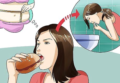 Improve your coping skills. If you are using food to cope with difficult situations, there are alternatives you can use. Are you bingeing to create comfort, or purging to punish yourself? If so, you are using food as a coping mechanism. Take the time to develop alternate ways to comfort yourself. For example, if helping others, or animals brings you comfort, reach out to others to help instead of reaching for food. Looking to others for support and rehearsing responses to difficult situations are two forms of effective coping responses you can use.