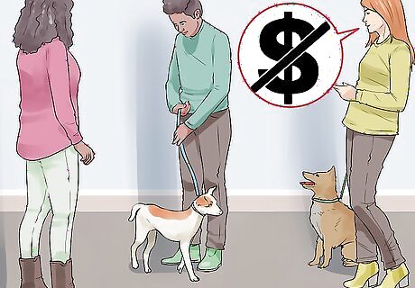 Trade with neighbors. Do you have a neighbor who also has a dog (or another animal)? Ask them if they’d be interested in working out a trade. For example, if they help you housetrain your dog, you can watch their dog while they are out of town for a few days. Look for neighbors whose work schedule is opposite yours. If you are both gone during the same hours of the day this arrangement won’t be much help.