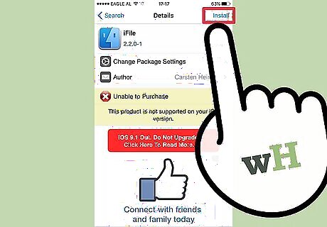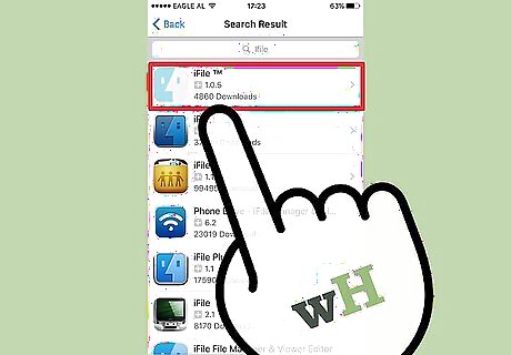 Search for “iFile,” then tap on the iFile app associated with the source you selected. For example, if you chose to add the “Hack Your iPhone” source to Cydia, select the iFile app associated with this particular source.