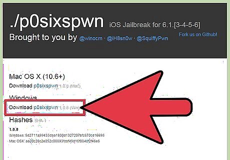 Download and install the appropriate jailbreak software for your iOS device based on your firmware version. For example, you may be required to download evasi0n on iOS 6 and later, and Absinthe 2 for iOS 5 and earlier.