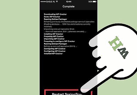 Follow the on-screen prompts in the jailbreak software to finish jailbreaking your iOS device. When your device has been successfully jailbroken, Cydia will display in the app tray.