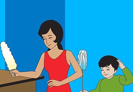 Start when they're young. All good habits take time to develop, and helping children learn to participate in household tasks is no exception. The earlier you start teaching them basic cleaning skills, the better it will be for them. If your child is toilet-trained, they're old enough to learn to put away their things and to keep their toys straight. They're not ready to do the dishes yet, but they're ready to learn to put their own toys away. Consider enrolling your child in daycare or pre-school when they're old enough. These schools teach basic clean-up skills that you can build on at home.