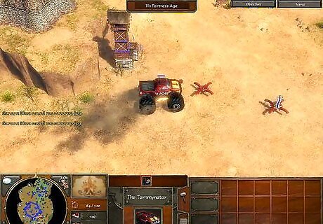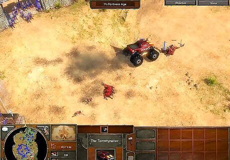 Destroy. Use your monster truck to defeat your enemies when they have a low military. You can even get an army of monster trucks. It will end the game faster though.