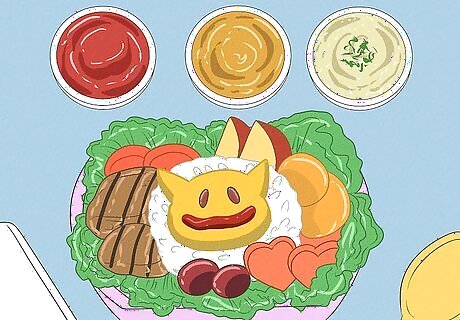 Make an adventure out of eating. Turn shopping and cooking into an event, and make your child a part of it. Find ways to make the presentation of your meal fun, such as using unique food shapes to create a picture on her plate. Remember that children love to dip their food. Assemble some dipping equipment for snacks and other dipped items.