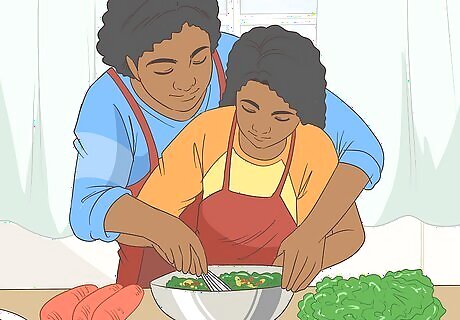 Encourage your child to help you prepare nutritious family meals. Explain the ways in which each ingredient is good for the body. Emphasizing the importance of preparing fresh foods to your children from an early age will instill healthy food habits. They should develop basic cooking capabilities as they age so that they do not resort to preservative-heavy foods in your absence.