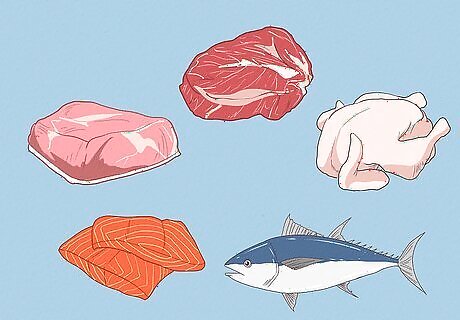 Get heme iron from meats. Heme is the easiest type of iron to digest and it aids the body in absorbing non-heme iron. Cook lean cuts of meat for your child and use healthy cooking methods such as baking, grilling, or broiling. Avoid fatty meats. Good meat-sources of iron include lean cuts of beef, chicken, and turkey. Salmon and tuna are also good sources of iron.