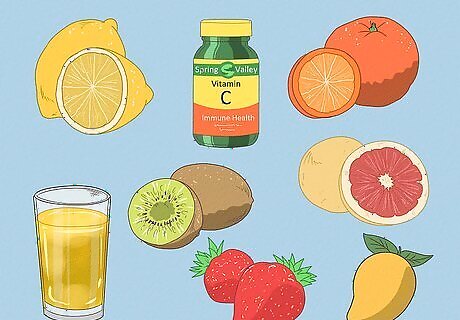 Pair foods rich in iron with sources of vitamin C. These will boost your child's ability to absorb iron. Good sources of vitamin C include orange juice, strawberries, kiwis, grapefruit, cantaloupe, and mangoes. Take a vitamin C supplement if your doctor advises you to boost your intake.