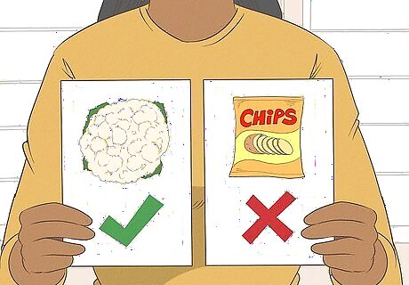 Encourage your child to make healthy food choices. Explain the effect that food can have on his or her body. Discuss the negative effects of eating unhealthy foods, and the health benefits of eating nutritious foods. Frame these discussions as making healthy choices rather than taking away junk food. Explain that it is fine to treat yourself once in a while, but to make sure it does not become too frequent.