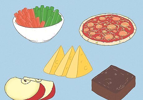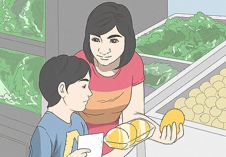 Include your child in the shopping experience. Bring your child with you on grocery shopping trips. Show him healthy snack options. As you select different ingredients, explain to him how each of those ingredients will be incorporated into a healthy meal. Show your child the variety of nutrients available in the produce aisle rather than packaged foods high in preservatives.