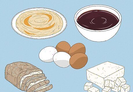 Get iron from other sources. There are many iron-rich foods that don't come from plants or meat. Be sure to include these to create a balanced diet for your child. Examples of non-meat and plant iron-rich foods are eggs, hummus, molasses, tofu, and enriched grains.