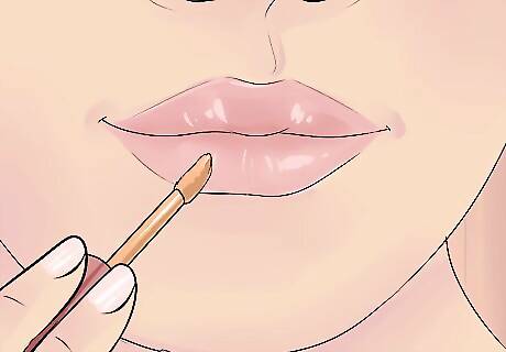 Blend concealer into your lips. For the most natural results, pick a concealer very slightly darker than your skin tone. After applying lip balm, dab the concealer in tiny amounts onto your lip, and continue to dab with your finger until it blends evenly across your lips. Avoid rubbing the concealer on, which can make it look caked on and strange.