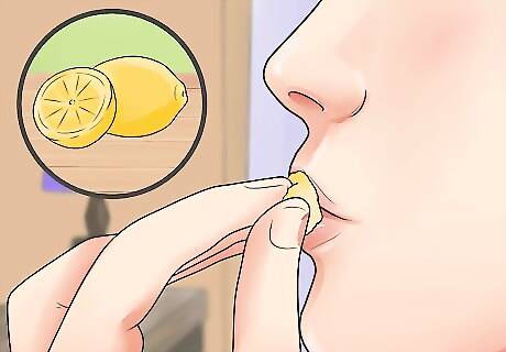Brush on lemon juice. Use a cotton swab to wipe a couple drops of lemon juice across your lips, removing dark, dead skin and perhaps making your lips slightly paler. Wash this off and moisturize after a few minutes, as the lemon juice can cause chapping if left on too long. If you have chapped lips, dilute the lemon juice with lukewarm water to avoid hurting yourself.