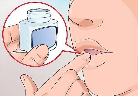 Use lip balm or petroleum jelly. Use Chapstick, petroleum jelly, or a similar product to keep your lips moisturized. Apply and leave in until there are no major cracks or flaking areas visible on your lips. If you plan to apply makeup, use the lip balm 1–2 hours in advance if possible, then continue on to that section. Drinking enough water will minimize cracks and chapping.