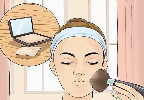 Powder your lips through a tissue. Cover your lips with a tissue, then brush on a powder makeup through the tissue. This sets the makeup beneath, making it stay on longer, and adds a matte appearance. If you prefer a glossy look, apply an additional tiny dab of lip gloss on over the powder.