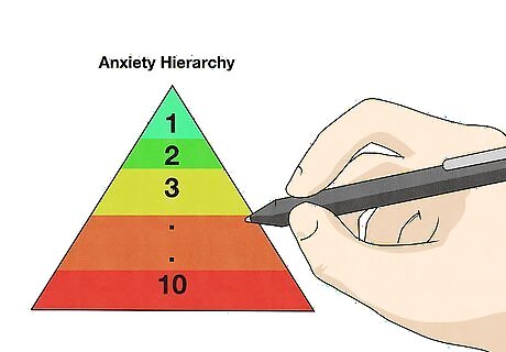 Create an anxiety hierarchy. Facing your anthropophobia and working through it (on your own or with a professional) involves being very specific about your fear and anxiety. Just as journaling about your experience will help with treatment, so will an anxiety hierarchy. Begin to identify a list of specific situations and the anxiety or fear you experience with each situation. Your list or hierarchy should include the following. Create 10 to 15 situations where you might experience fear or anxiety, such as spending time one on one with someone, being at a family gathering, being at an airport. Most people discard some situations or pair some together, but you should end up with at least 10 situations. Rank each based on how much anxiety you experience where 1 is the lowest anxiety and 10 is the highest anxiety imaginable. The levels should look like the following; Low Anxiety (1,2), Low-Moderate Anxiety (3, 4), Moderate Anxiety (5, 6), Moderate-High Anxiety (7, 8) High Anxiety (9, 10). Make sure, when you are finished, that there are at least two situations in each anxiety level category.