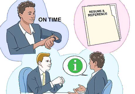Impress potential employers during interviews. Be sure to arrive on time and dress professionally. Bring any relevant information, like a copy of your resume as well as letters of recommendation or references. State your interest in the position to the interviewer and explain any relevant skills. Describe an instance in which you succeeded in making a sale or persuading someone to do something. For instance, tell the story of how you raised $1,000 for your local humane society by hosting a doggy fashion show. At the end of the interview, ask about the next step in the process and find out how to contact the interviewer.
