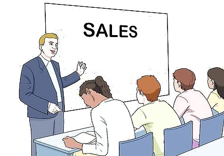 Take a sales class. Find out if sales courses are offered at a nearby community college. Taking classes in sales can help you learn relevant terms, prepare you to interact with clients and customers, and understand the industry better. You'll also make connections that could help you land a job in the future. You could take just 1 class, enroll in a 1-year certification class, or get a 2-year associate degree in sales or marketing.