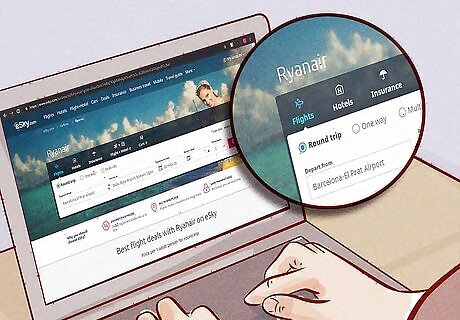 Look for flights from Barcelona-El Prat Airport to Ibiza Airport. The biggest airport, and most well-serviced airport, in Barcelona is the Barcelona-El Prat airport. Look for flights from Barcelona to the aptly-named Ibiza Airport on the island. It doesn't usually matter which airline you choose, but be prepared for different levels of comfort in the air on an economy flight versus a higher-end flight. Ryanair is notable for its very affordable rates at about $13, but has been criticised for its service and its flight quality. Vueling offers average rates of about $40 and is popular for the Barcelona-Ibiza route. Europa offers a more expensive rate at $100 but is the quickest and most comfortable route