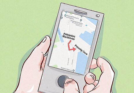Make your way to the port at Poblados Maritimos where the ferry departs. Once you arrive in Valencia, either by driving, train, or bus, find your way to Poblados Maritimos around the time of your ferry's departure time. The easiest way to do this is by hiring a taxi, but you can also walk or take public transportation to get closer. Pick up a local map to find your way around or look at an online map to get your bearings. The ferry departs from Passeig Caro, so find your way to this part of the port once you get to Poblados Maritimos.