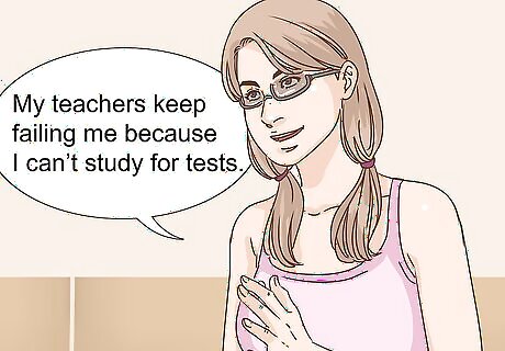 Explain your symptoms and concerns. Tell your parents how you have been struggling. Let them know that any treatments you have had up to this point are not working. Focus on how it is distracting you at school and how you are unable to finish your schoolwork. You can say something like: “My teachers keep failing me because I can’t study for tests, and at this point, I’m worried about applying for college. The help they’re giving me isn’t working, and I need something more to help keep me focused.” If they try to dismiss your concerns, you can try repeating the issues in a calm voice. Something like: “I hear your concerns, but I really think that it is becoming a problem.” If they still won’t listen, back off and try again another day.