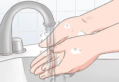 Wash your hands after administering. Once you have given your cat the pill, you should wash your hands with soap and warm water. Scrub your hands for at least 20 seconds and then rinse off the soap and dry your hands on a clean towel.
