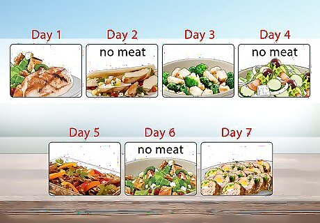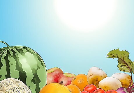 Prioritize seasonal fruits and veggies in your menu. In-season produce nearly always costs less at the grocery store, so plan your menu accordingly. Buy and use more asparagus, peppers, squash, apples, and so on when they’re most abundant and affordable where you live. Look for farmer’s markets and fruit stands in your area to get local, in-season produce.